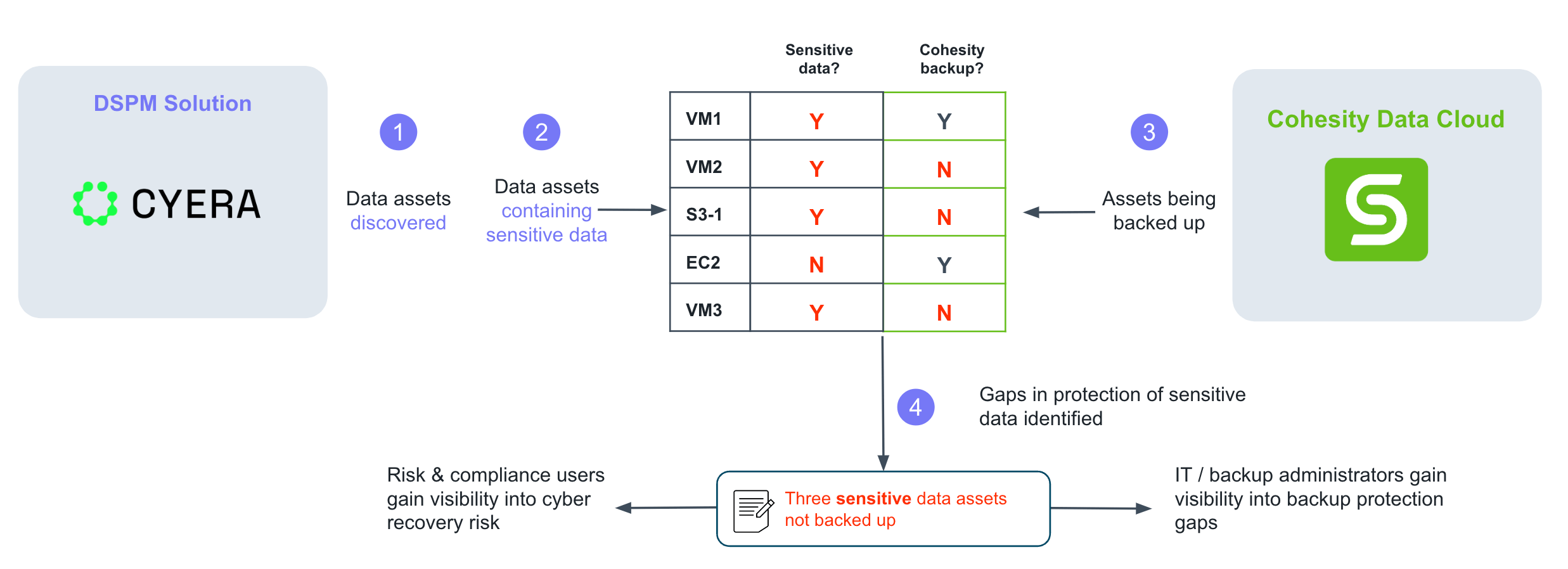 Further, it’s been proven time and again that InfoSec leaders want to deploy “best of breed” products to ensure they use the best possible tech to protect and secure enterprise data. This is exactly what’s playing out in the DSPM category. Cohesity is working with the DSPM ecosystem on two key integration use cases: