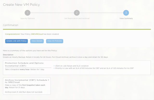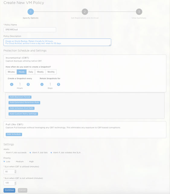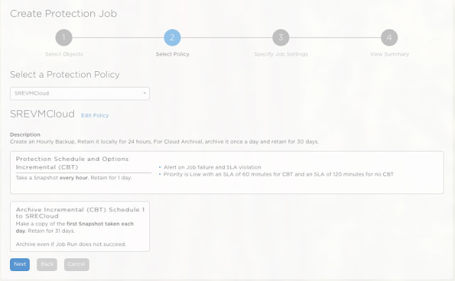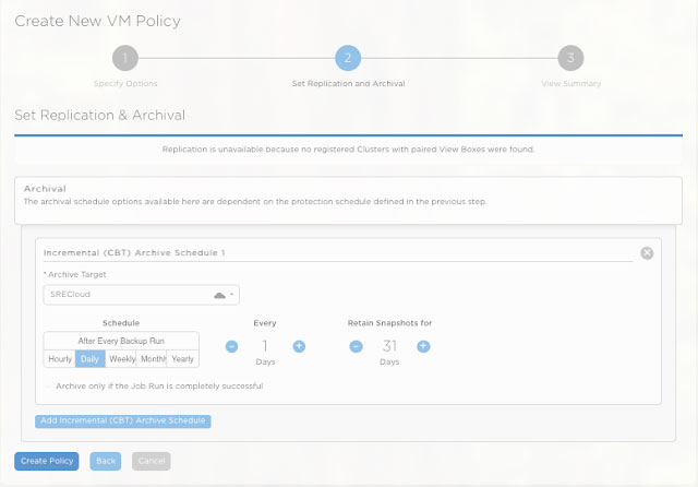2. Set up a flexible VM Backup Policy SREVMCloud Local backup done once every hour and it is retained for a day Cloud archive done once a day and it is retained for a month
