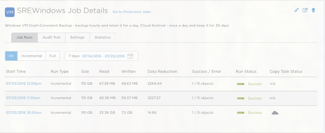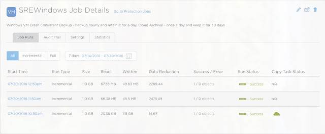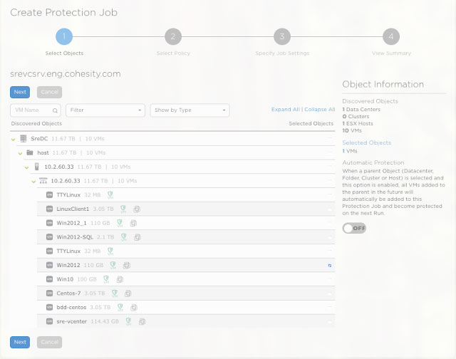 3. Creating a Protection job (SREWindows) that adds the VM to the above protection policy (SREVMCloud)