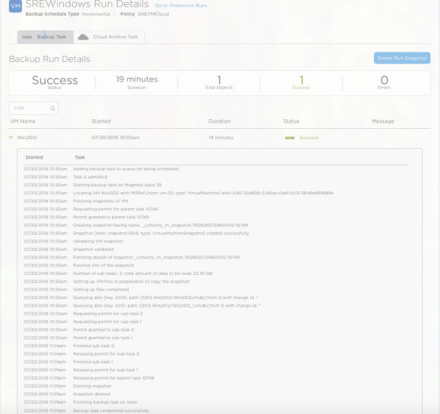 After the local backup is done, the snapshot will be transferred to the cloud-based on the configured policy.
