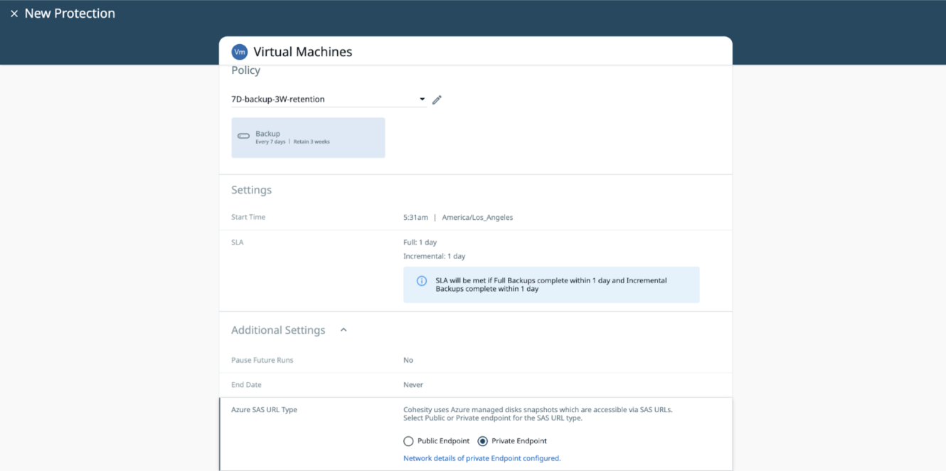 Azure VMs are one of the most popular cloud services. As such, timely recovery of VMs in the case of an incident is crucial. Cohesity Cloud Services empowers you to manage backup and recovery options with the ease and convenience of an on-demand model.