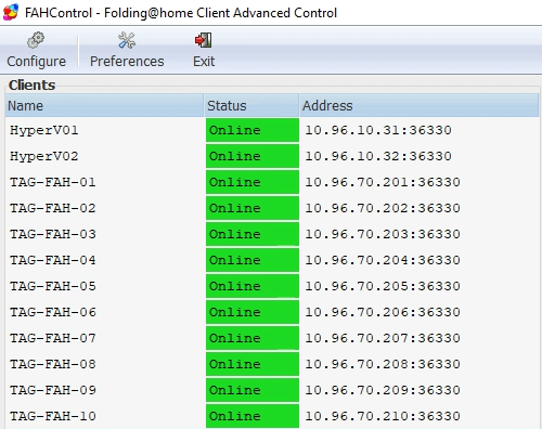 The two physical DELL servers in the DMZ Data Center were also loaded with the native Windows Folding at Home client running as a service. In all physical device use cases we set the folding to “Full” and on the windows hosts also added the client-type=bigadv switch.