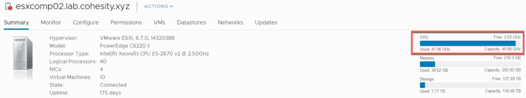 The virtual machines were a little different. We decided to go with William Lam’s packaged Appliance and alter the settings to roll up to the Cohesity Team ID (241525). Based on the total available CPU on a host of about 50Ghz, a worker client with 16 vCPUs running on “full” power it will basically consume 100 percent of the host’s CPU. Since these workers don’t all tend to run at once we also set up an anti-affinity VM rule to ensure there was only one of these virtual machines per host, resulting in 12 total worker nodes. We were able to leave the rest of our day to day validation workloads running utilizing DRS to make sure they weren’t impacted.