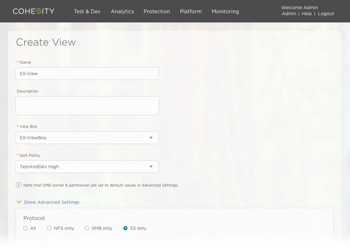 Rapid data growth and an increased demand for private and hybrid cloud storage are driving object storage technology to the mainstream. Enterprises and applications are utilizing object storage for scalable, cost-effective on-premises cloud storage solution. Cohesity DataPlatform 4.0 provides an S3-compatible storage platform (in addition to NFS and SMB) as a scalable, secure and cost-effective hybrid cloud storage solution. This provides enterprise-class support for S3 applications.