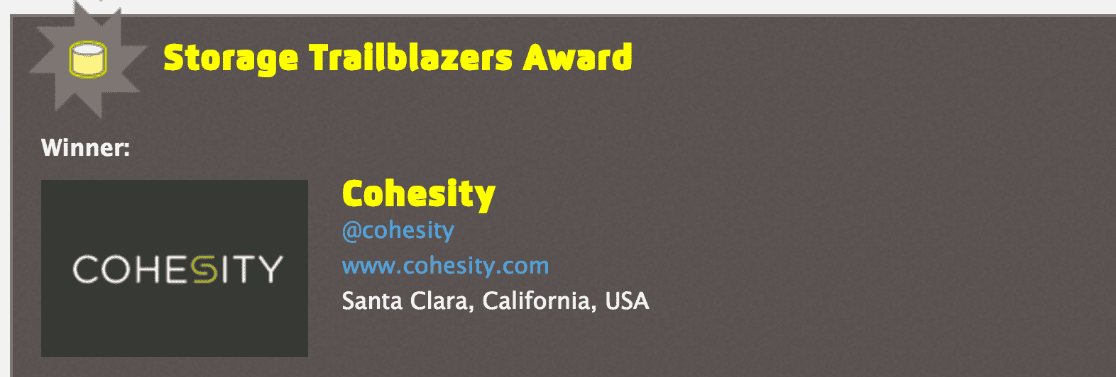 After companies filled out detailed applications many months ago, a group of several dozen technology experts narrowed the list. The judging panel includes notable CTOs, technology analysts, popular bloggers and prominent journalists. In January, Cohesity made the shortlist along with five other notable storage companies.