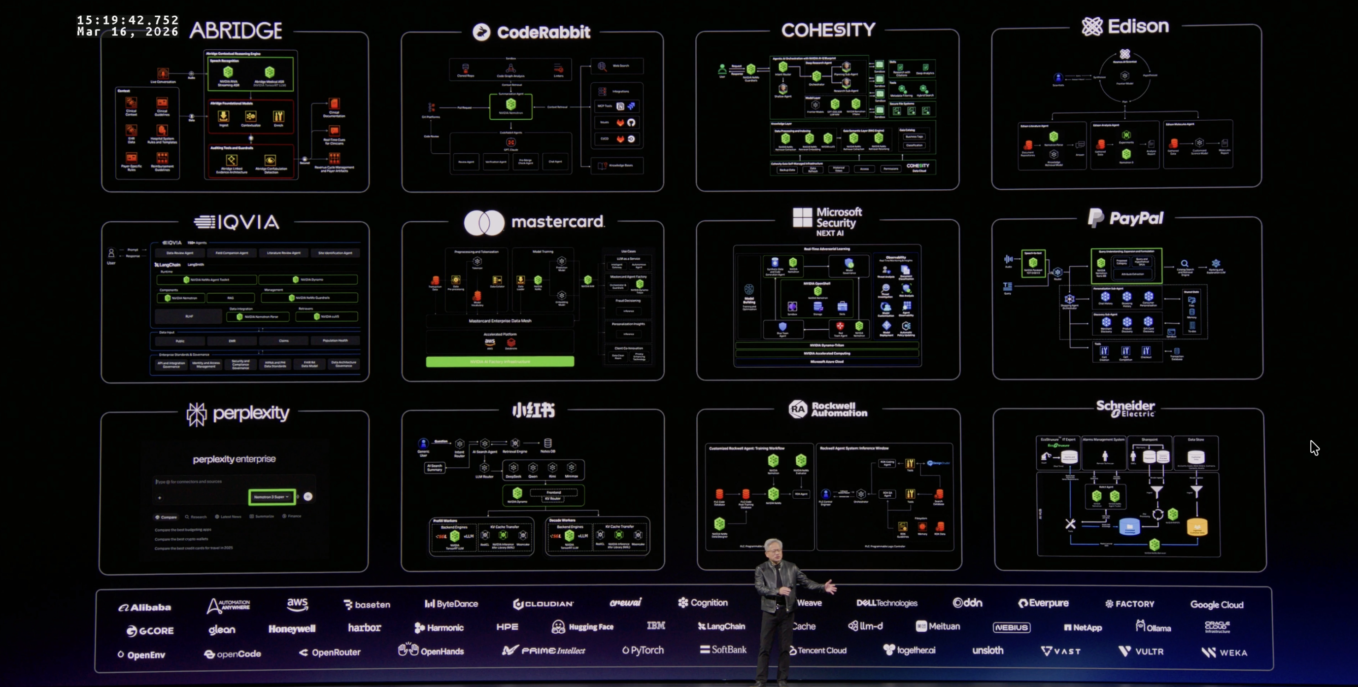 NVIDIA CEO Jensen Huang speaks at GTC, Monday March 16, 2026.