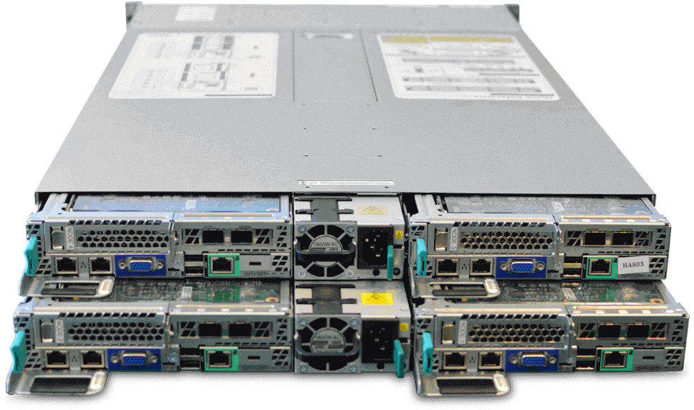 The C2000-series appliance is a 2U chassis comprised of multiple nodes. Each node contains (2) Intel Xeon 8-core processors and 64GB of DDR4 memory. For connectivity, each node also contains (2) SFP+ 10GbE ports, (2) 1GbE ports, an IPMI port, and full KVM console connectivity.
