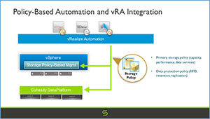 And at VMworld, we’ll be showcasing our latest integration with vRealize Automation. Cohesity is designed with an API-first architecture. These APIs can be used to integrate with existing automation and orchestration tools such as vRealize Automation. We have built a vRealize Orchestrator plugin which is used to expose data protection policies in vRA. Application owners using vRA to self-provision VMs can now select both primary storage policies (supported through VMware SPBM) and data protection policies (supported through the vRO plugin and the Cohesity policies). It all looks very integrated and seamless to application owners in vRA. And helps close a critical gap towards achieving full policy-based automation in the Software-Defined Datacenter.