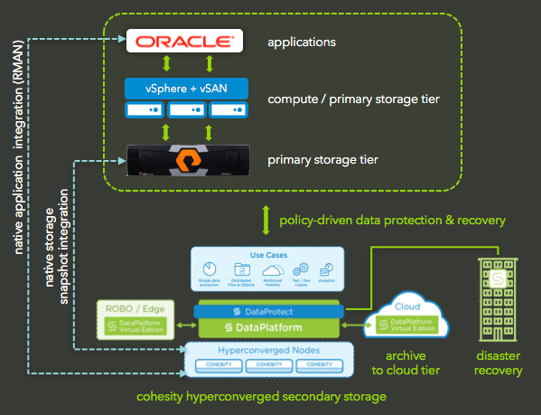 From simplicity of management to risk-averse operational workflows to faster data protection and recovery, we’ve got you covered. Cohesity DataPlatform, DataProtect, and our integration with Oracle RMAN address a majority of challenges enterprises face today when it comes to data protection and recovery strategies of their large and growing Oracle database infrastructures.