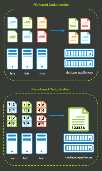 Data deduplication is performed at two different levels: file-based or block-based. Comparatively, file-based is the less efficient form of deduplication due to how it purges duplicated files.