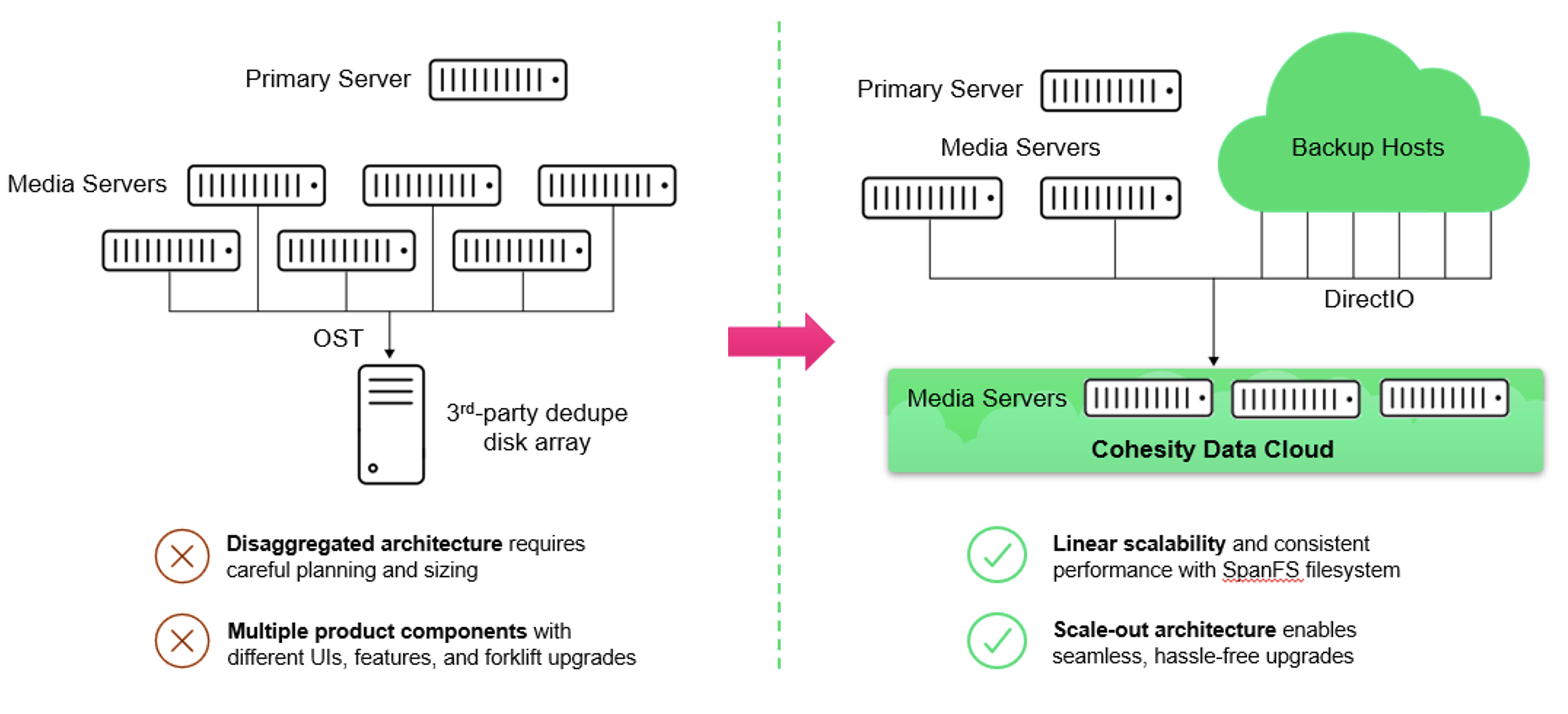 DirectIO connected NetBackup to our industry-leading scale-out storage platform—the same platform used by Cohesity DataProtect. Today, we are taking the next step in this evolution by bringing NetBackup media services directly onto that platform.