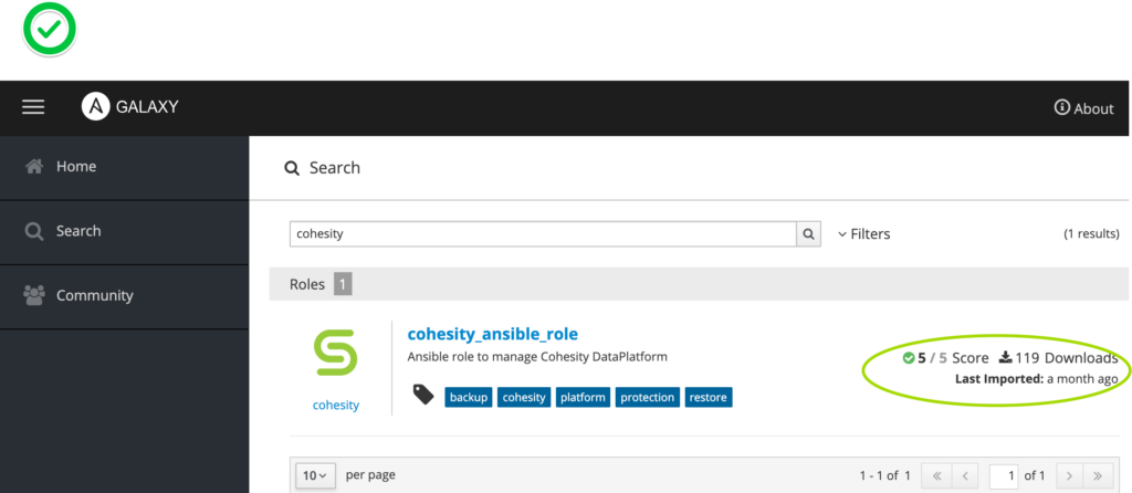 I recently joined Cohesity and I was really impressed by the Integrations and API team here, for their effort to leverage the APIs and publish SDKs using PowerShell, Python, Ansible, and more. They have also created public github repositories for these SDKs with a lot of useful information for developers. I would also like to highlight that our Ansible integration has a perfect score of 5/5 on Ansible Galaxy — kudos to them!!