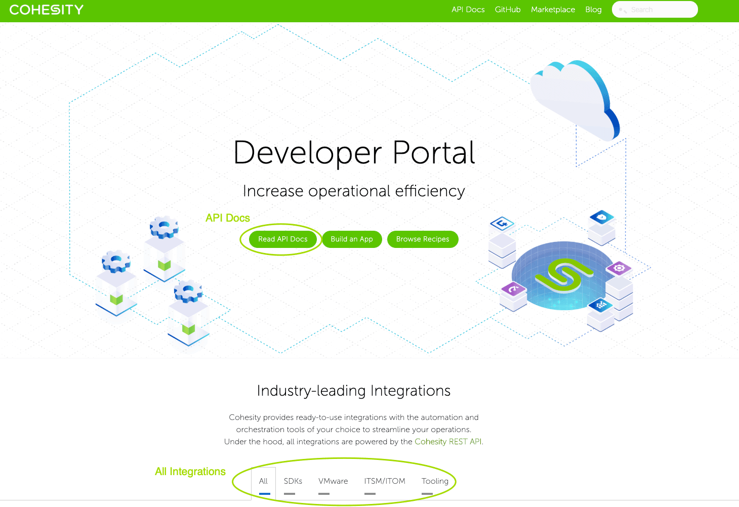 In order to consolidate and promote these SDKs and attract developers and DevOps folks, Cohesity has developed a Developer Portal that hosts all the integration efforts with a lot of useful information like SDK documentation, sample workflows, and blogs.