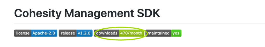 Cohesity has many partners and third-party developers who are writing various automation solutions using our SDKs. We are tracking these numbers using various Github Badges and I am proud to say that we are an active community that is growing fast in all our SDKs and integrations.
