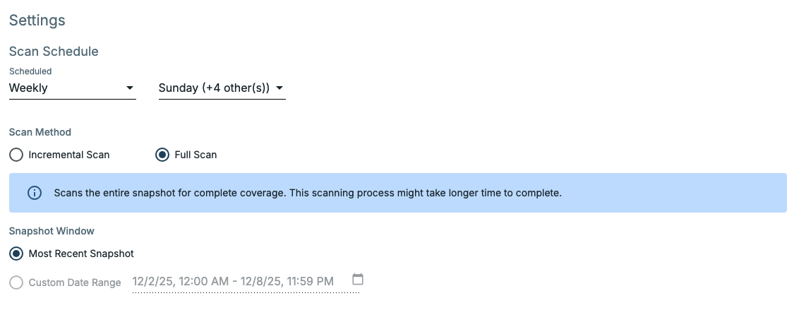 Use these classifications to inform how often and deeply you scan. High-risk critical workloads should be scanned after a new backup is captured, or at some other high frequency. Medium and lower-risk workloads can be tuned to your SLA and storage profile. Another benefit of performing scans on secondary data is that users won’t see performance degradation. Their experience working in production environments is unaffected.