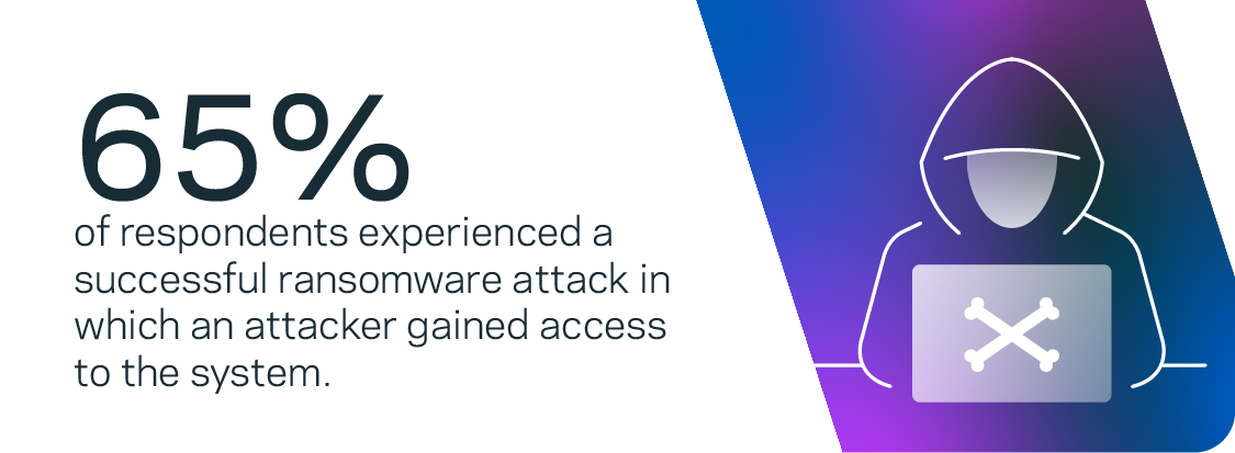 Unfortunately, even with cyber strategies in place, incidents can occur. In the Veritas Data Risk Management Report, 65% of survey respondents said their organization had experienced a successful ransomware attack in the last two years.