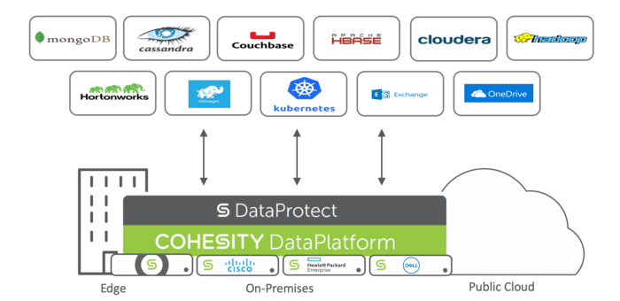 Cohesity is the first and only modern backup and recovery solution to offer enterprise-class backup, recovery, and data management for most modern workloads, including all NoSQL distributed databases, Hadoop Distributed File System (HDFS), Containerized applications based on Kubernetes, and SaaS with Microsoft Office 365 Exchange Online and OneDrive, on a single web-scale platform.