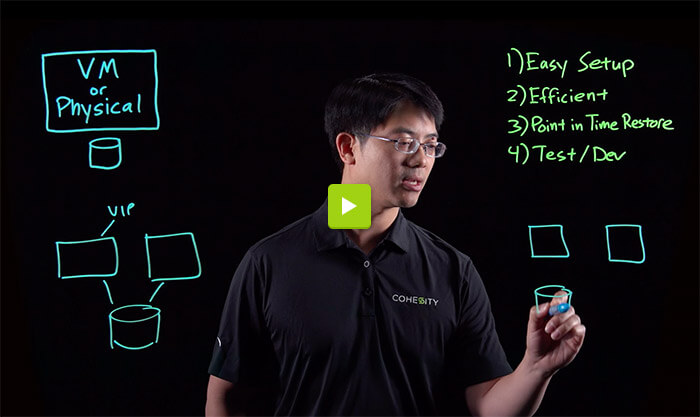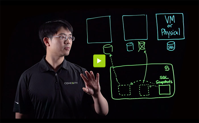 In this pair of brief videos, one of our engineering rockstars, Warren Shen, whiteboards his SQL Server “how to” wisdom. In less than ten minutes, you’ll see how Cohesity very easily solves some of your most complex secondary storage problems.