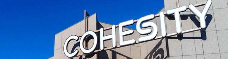 A new sign tops Cohesity’s building in downtown San Jose, California, proudly proclaiming Cohesity’s presence in the heart of Silicon Valley.
