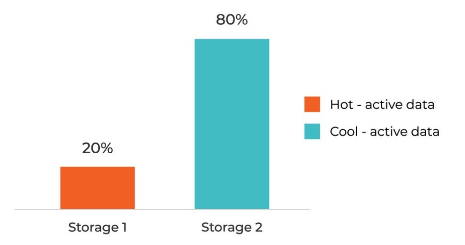 As an example, if you had 100 TB with 80% low-touch data, then you would likely need to have two blob storage accounts, as follows: