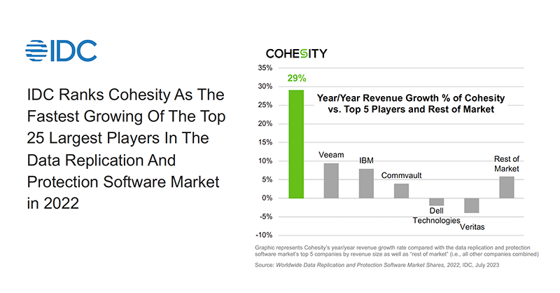 IDC ranks Cohesity as the fastest growing of the top 25 largest players in Data Replication and Protection Software Market in 2022