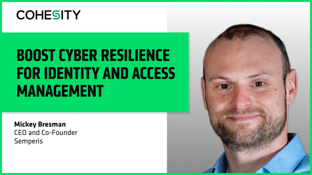 Watch a conversation between Cohesity CEO, Sanjay Poonen and Semperis CEO, Mickey Bresman to learn more about how Semperis and Cohesity are teaming up to bring end-to-end resilience to your critical identity infrastructure.
